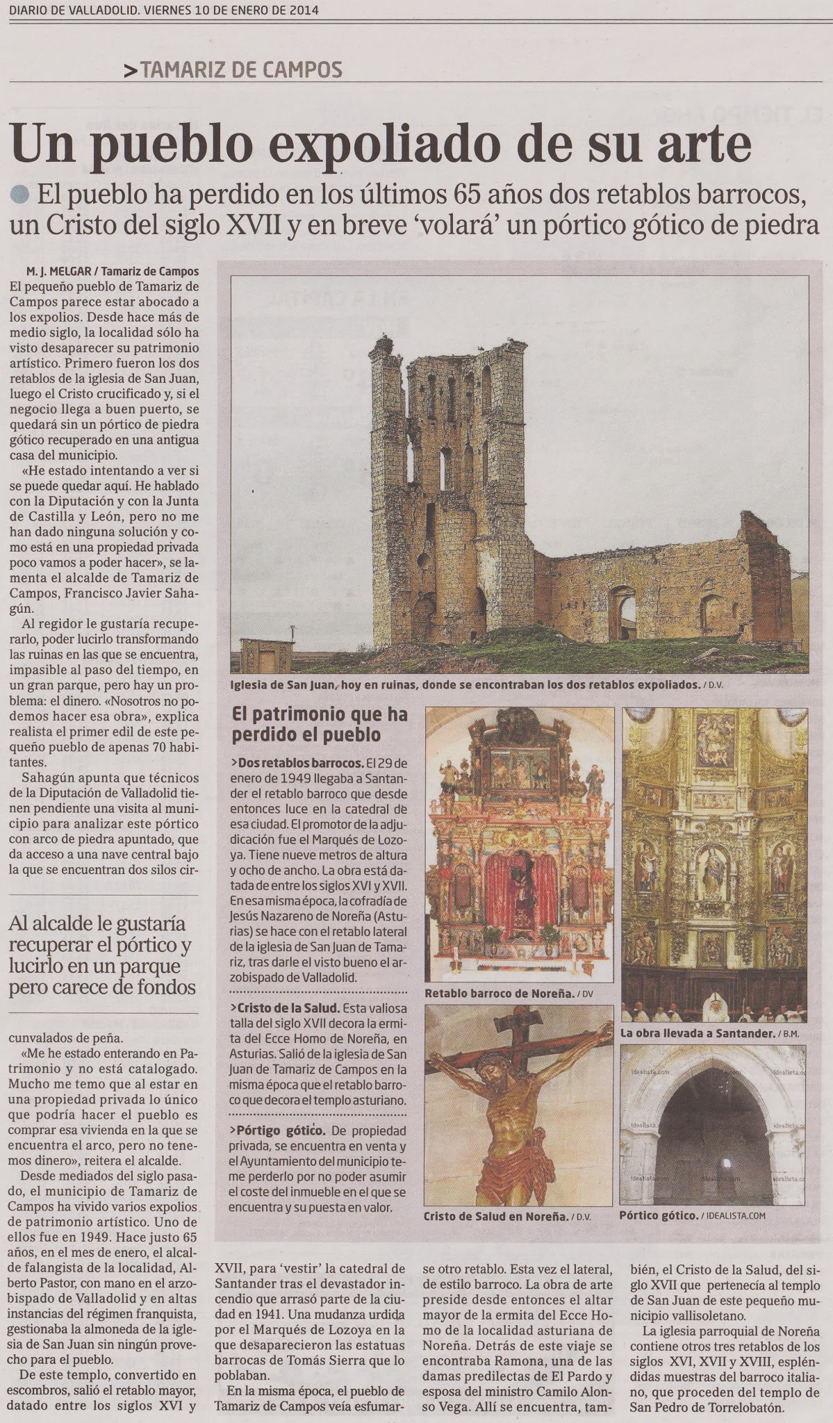 Un pueblo expoliado de su arte — El pueblo ha perdido en los últimos 65 años dos retablos barrocos, un Cristo del siglo XVII y en breve "volará" un pórtico gótico de piedra