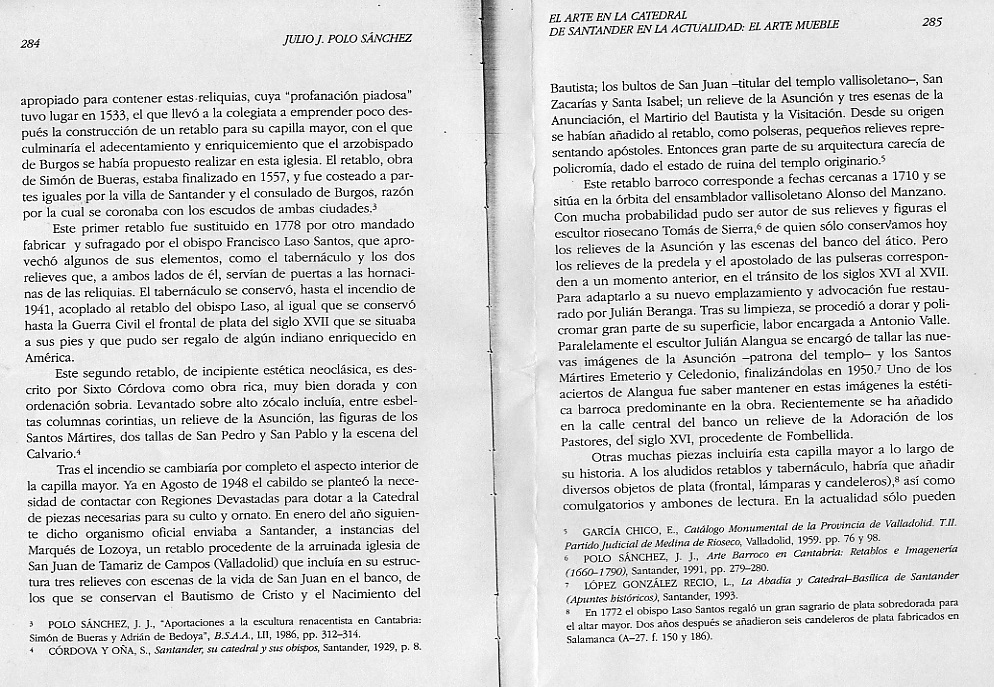 Retablo del altar mayor de la Catedral de Santander. Procede de la iglesia de San Juan en Tamariz de Campos. Fue realizado alrededor de 1710; su arquitectura pertenece a la órbita de Alonso del Manzano, mientras que la escultura puede atribuirse a Tomás de Sierra, de Medina de Rioseco.