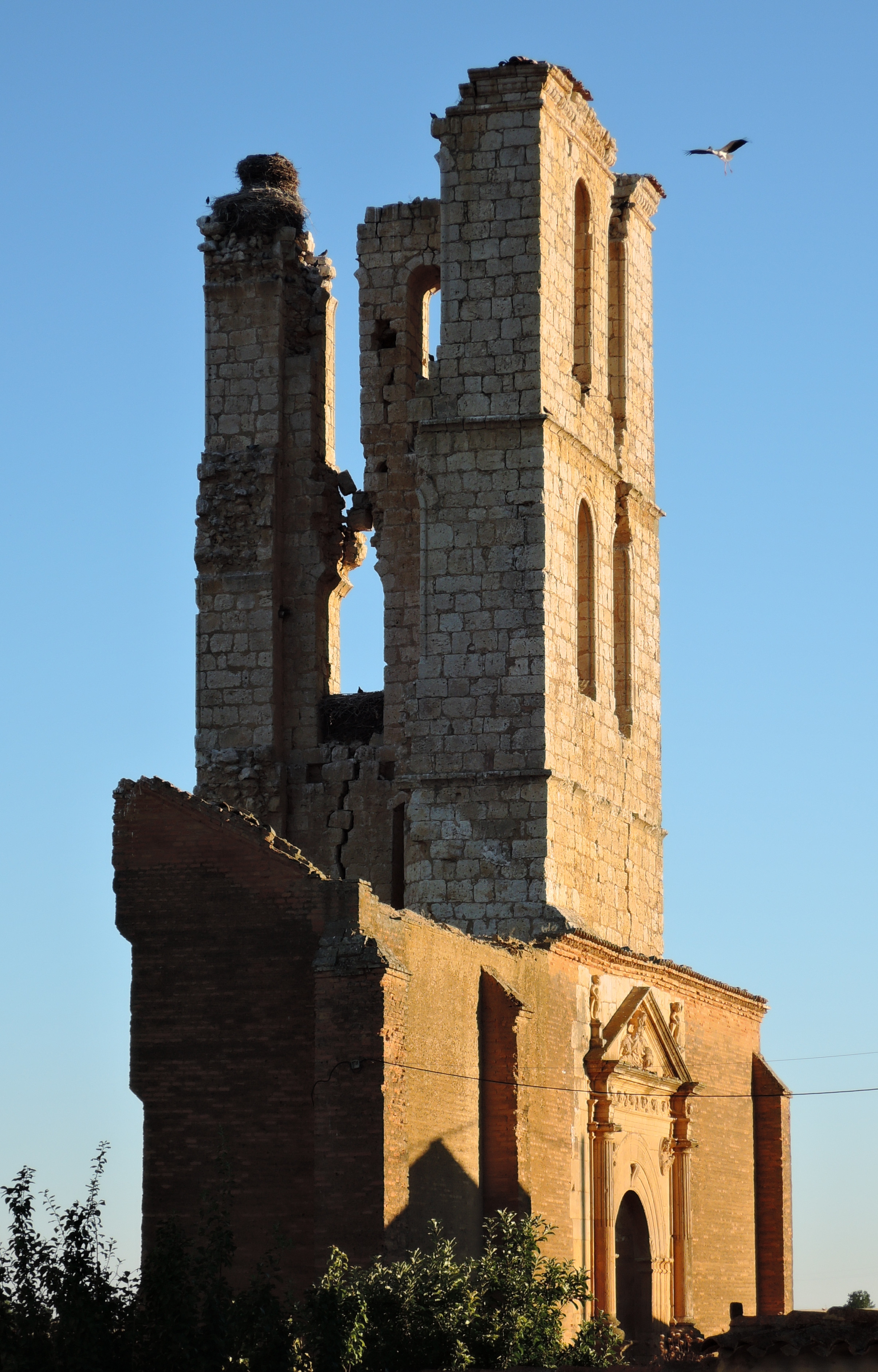 Hoy solo quedan la portada renacentista del siglo XVI y los restos de una torre que puede derrumbarse en cualquier momento.